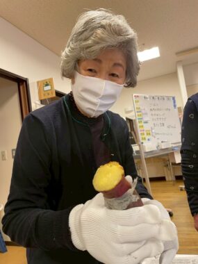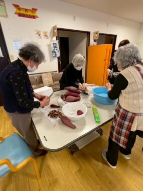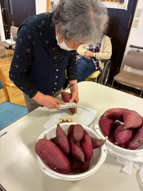 昼食後、利用者様にさつま芋の下拵えをお手伝いいただきました。