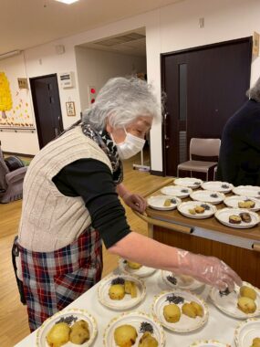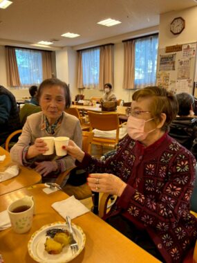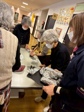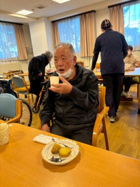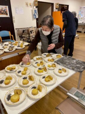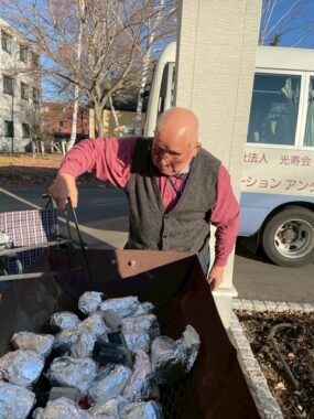 11月20日(木)、デイケアでは初めての試みとなる焼き芋フェスを開催し、おやつの時間に合わせ焼きたての焼き芋と、体が温まる甘酒を提供しました。