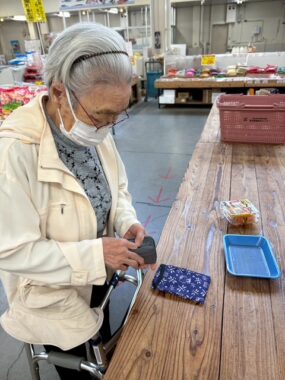 売り場では、気になる商品を手に取りながら選び、職員やほかの利用者様と相談する姿も見られ、日常生活動作の維持・向上にもつながる良い機会となりました。