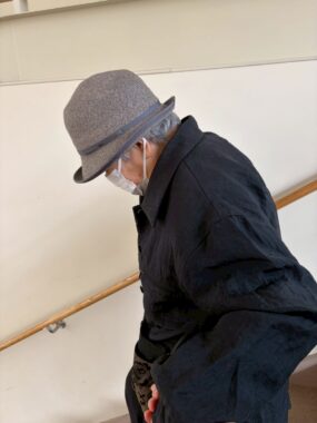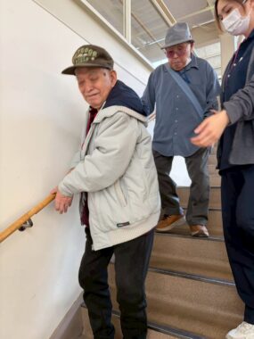 階段を下りる際は、手すりを利用しながら一歩一歩しっかりと足を運び、広い場内を歩くことで自然と歩行訓練にもつながり、周囲の様子を楽しみながら無理のない範囲で活動することができました。