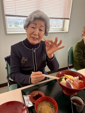 昼食は事前にそれぞれ食べたいメニューを伺い、注文していたため、スムーズに提供され、皆さま安心してゆっくりと食事を楽しまれていました。
