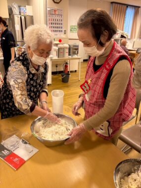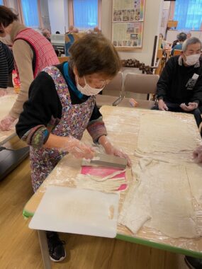 11月17日(月)デイでは、利用者の皆さまと”手打ちうどん”と”お稲荷さん”作りに