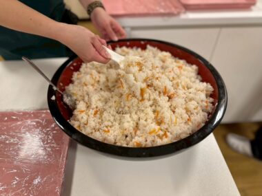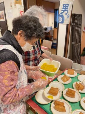 酢飯を詰める動作は、指先の細かい使い方の訓練にもなり、皆さん丁寧に仕上げてくださいました。