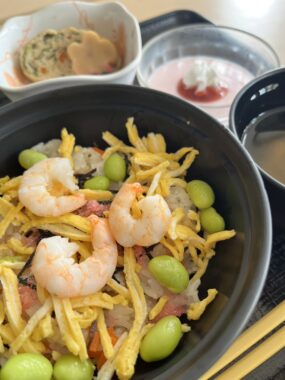 アルペジオ開設記念日 3月5日 14回目の開設記念日を迎えることが出来ました! 施設の開設記念日を祝い、行事食が提供されました。 今年のメニューは ちらし寿司 すまし汁 炊き合わせ いちごババロア です。 「おいしいよ、エビが好きなんだ」と喜んでいただけました。 今後も利用者様に喜ばれる食事を提供していきたいと思います。 ※ 写真の掲載にあたっては、各関係者様の了承を得ております。 2026.03.05(木) アルペジオ