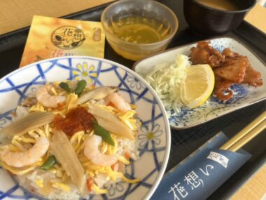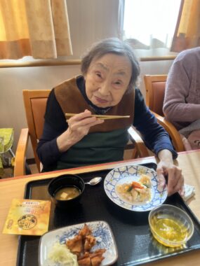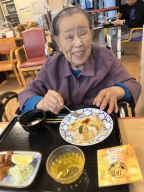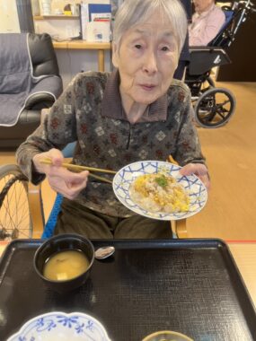昼食が運ばれると、「今日はちらし寿司なのね」「きれいでおいしいよ」と喜びの声が聞こえました。