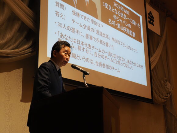理事長による新年の挨拶から始まり、続いて野村部長より力強い乾杯のご発声をいただきました。